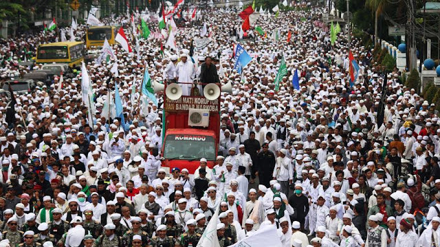 Ucapan itu disebut sebagai penistaan agama, sampai akhirnya ribuan massa berdemonstrasi tanggal 14 Oktober lalu. Habib Rizieq Shihab, Imam Besar FPI, terjun ke lapangan untuk memimpin langsung aksi di depan Balai Kota Jakarta ini.