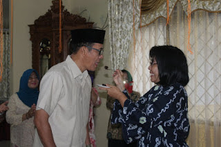 Baru bangun tidur dan berniat merapikan tumpukan sepatu, Ketua Tim Penggerak PKK Kabupaten PALI itu dikejutkan dengan kedatangan tamu tak diundang yang dikomandoi oleh Sekda PALI; H Robby Kurniawan SStp Msi, Camat Talang Ubi; Habibi CIkading SHut MM serta Ketua DWP PALI; Ny Aryanti SE MM yang membawa kue ulang tahun lengkap dengan lilin dengan angka 51.