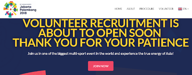 - 13000 volunteer untuk 18th Asian Games 2018 - (AGUSTUS 2018 – SEPTEMBER 2018) di Jakarta & Palembang